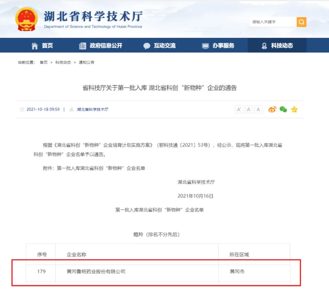 根據(jù)《湖北省科創(chuàng)“新物種”企業(yè)培育計(jì)劃實(shí)施方案》(鄂科技通〔2021〕53號),湖北省科技廳于近日發(fā)布了《省科技廳關(guān)于第一批入庫湖北省科創(chuàng)“新物種”企業(yè)的通告》,公示了第一批入庫湖北省科創(chuàng)“新物種”企業(yè)名單,黃岡魯班藥業(yè)股份有限公司入圍湖北省“瞪羚”企業(yè)。